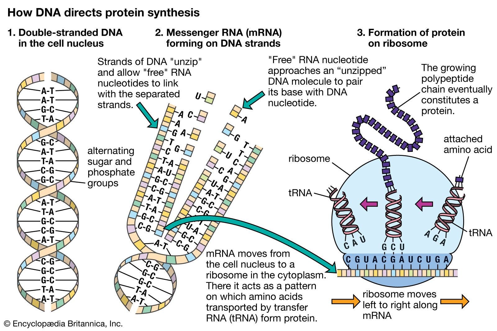 The mRNA then exits the nucleus where a ribosome comes along and attaches to the RNA. The ribosome reads the RNA and creates the corresponding protein encoded by that strand of RNA. This is how the mRNA vaccines ‘work’ - the vaccine inserts RNA that encodes the spike protein into cells so that the cells read the RNA blueprint and spit out a bunch of spike proteins.