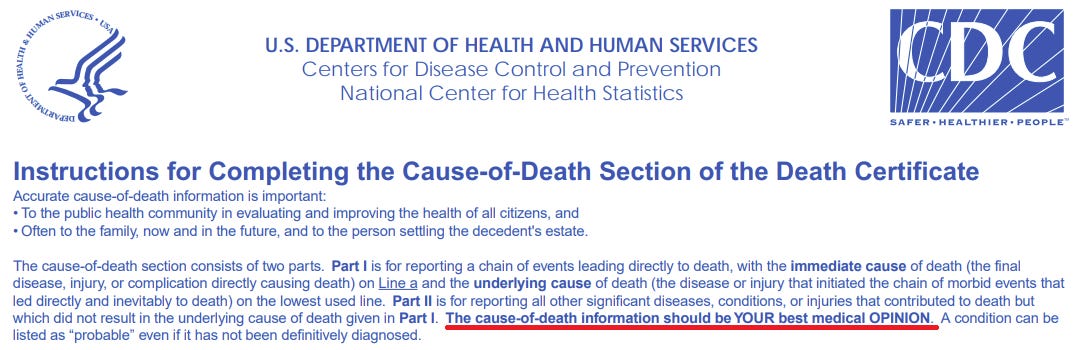 The main point here is that the CDC - in no uncertain terms - declares that the COD’s represent the medical opinion of the person filling out the death certificate.