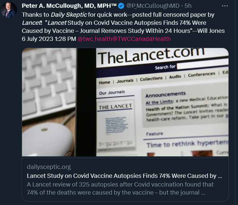 The meta review of vaccine death autopsies posted on The Lancet was pulled this morning after being up less than 24 hours: