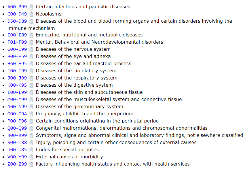 Of particular importance to us, without getting too deep into the weeds of how ICD-10 is organized, is that there are a multiple ICD codes for many conditions.