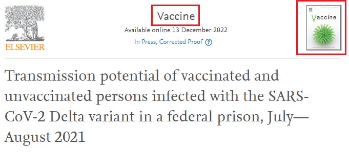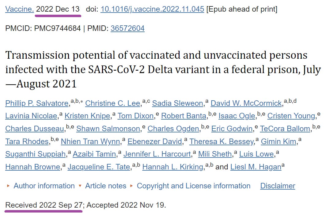 Yet the CDC delayed submitting the study to a journal. . . until September 27, 2022 - almost a full year later. It was only first published online as a peer-reviewed paper in Elsevier December 13, 2022: