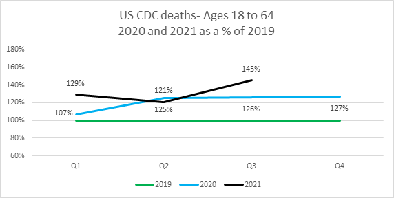 The following (not included in Senator Johnson’s letter) is a comparison between 2021 and 2020 - in 2020, there was lots of covid but no vaccines, which indicates that covid is not a significant cause of the 2021 increases: