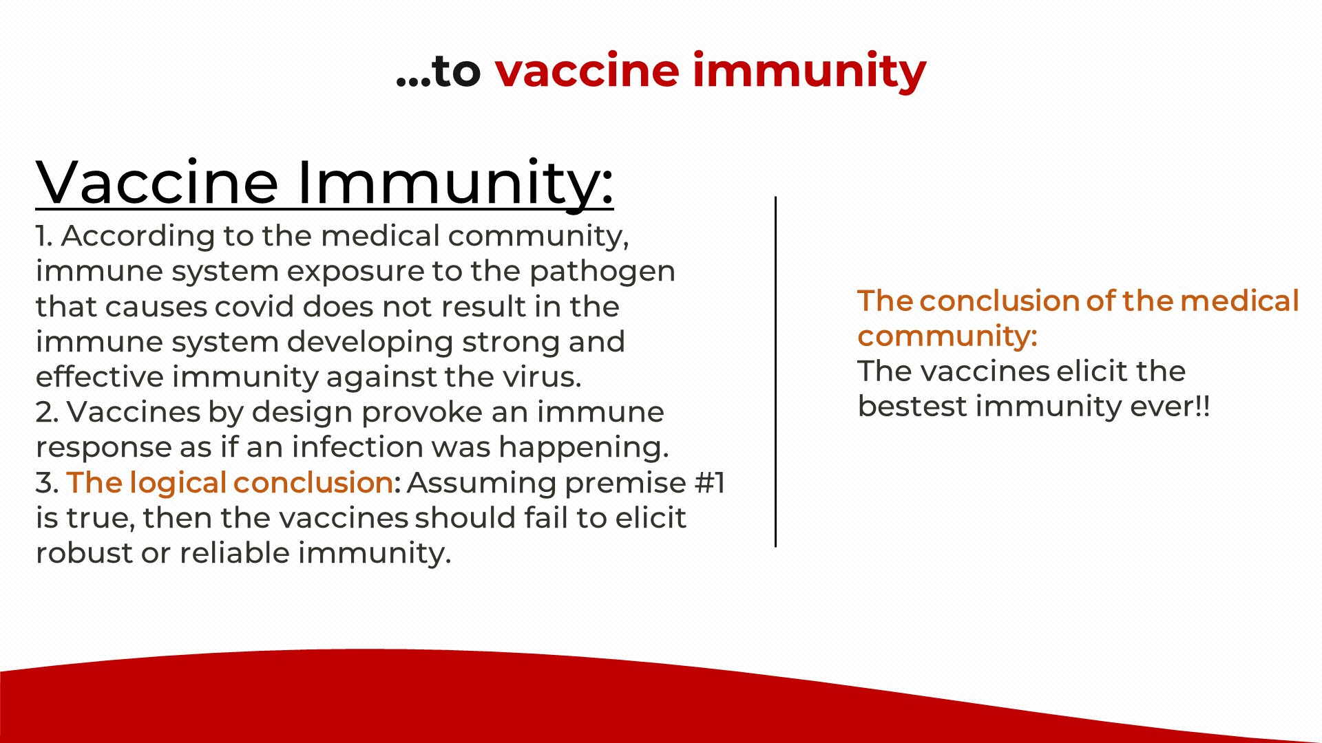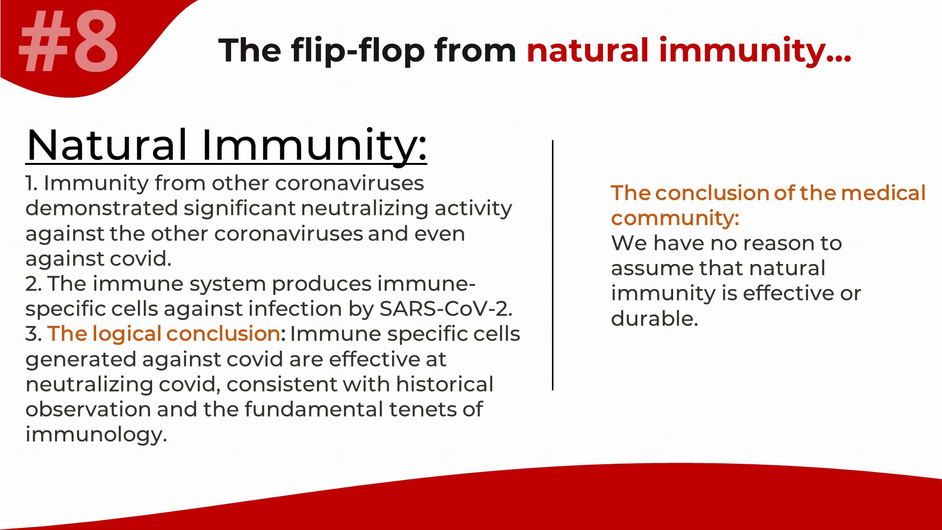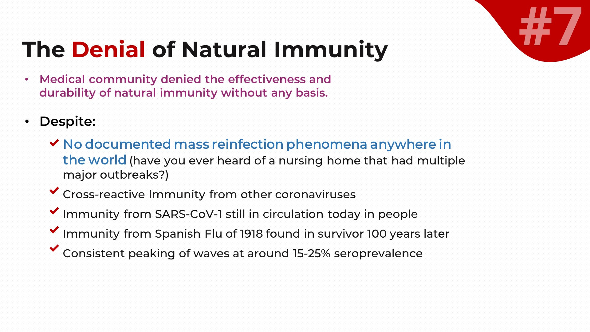 I had limited space on the slide, so I picked one starting premise for natural immunity from those listed 2 slides ago.