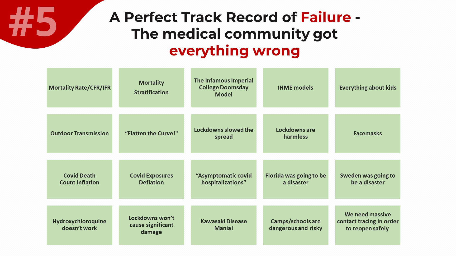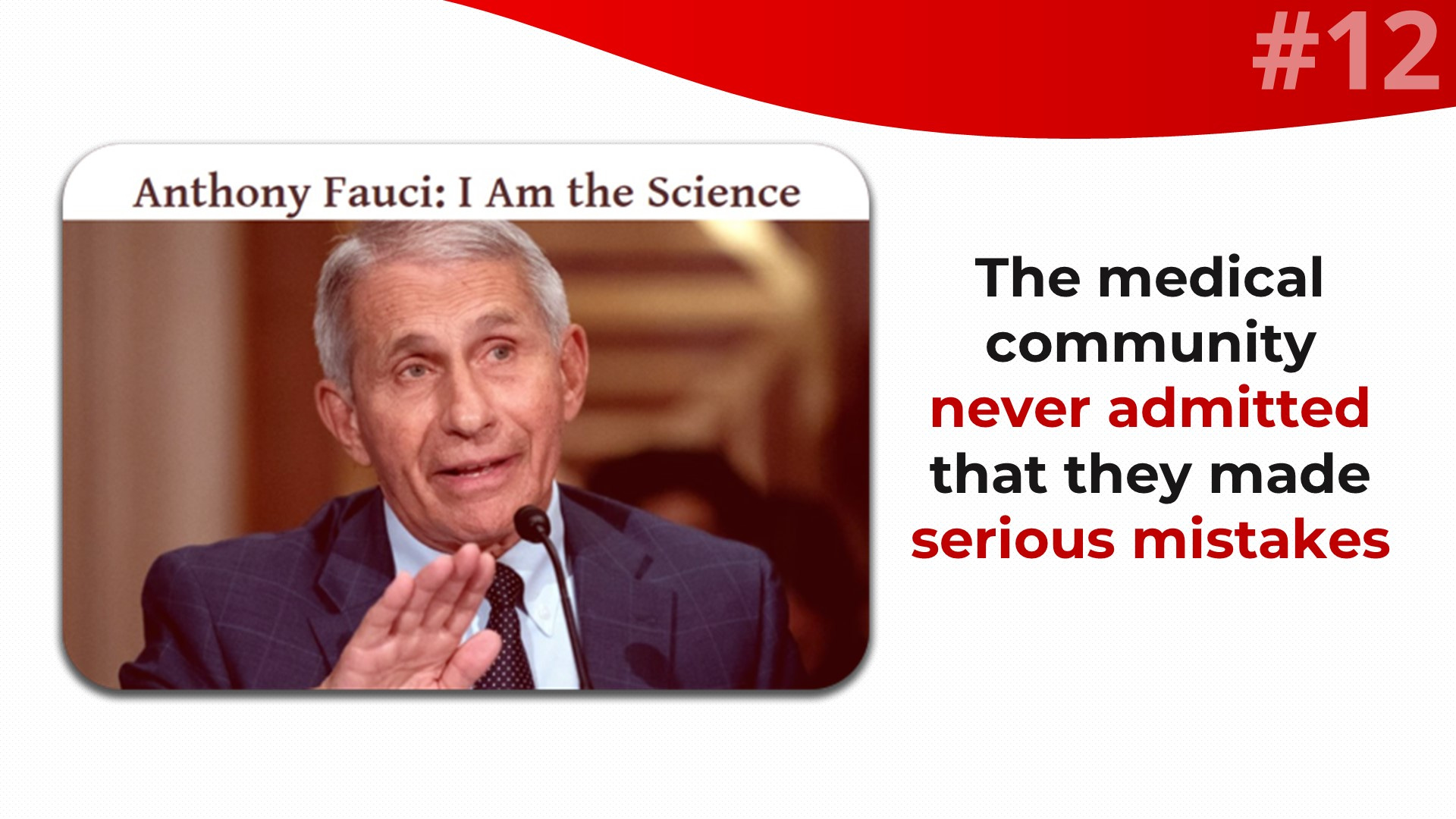 And not only did the medical community fail to admit that they made mistakes that were mistakes at the time they were made, but Fauci declared himself to be the living embodiment of SCIENCE incarnate. This is instructive beyond Fauci’s unhinged narcissism. What Fauci is essentially saying with this is that everything he did represented the best analysis and right decisions at the time with the available information - he was literally ‘science’ itself in action.