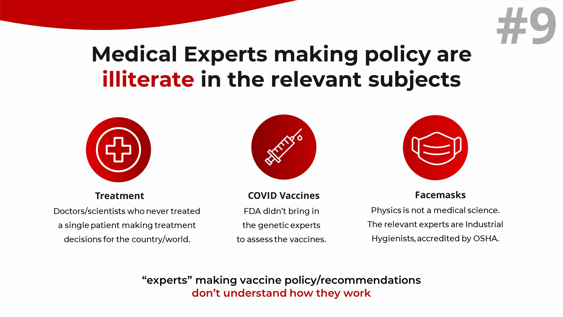 I was trying to highlight that the medical community was getting all the details wrong. Details are where expertise is manifest - experts are supposed to be technically proficient and thoroughly familiar with the granular details of the subject of their expertise.