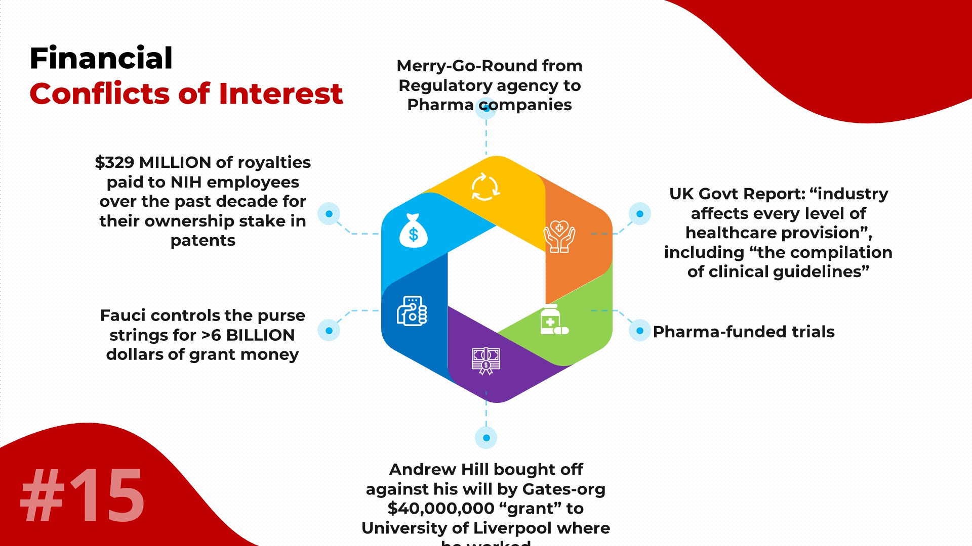 The primary financial conflicts of interest (to put it rather mildly) is not from out-and-out bribes (which do happen, such as Andrew Hill’s university getting a $40,000,000 extortion bribe to doctor (pun intended) the results of Andrew Hill’s Ivermectin meta-analysis results).
