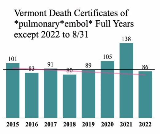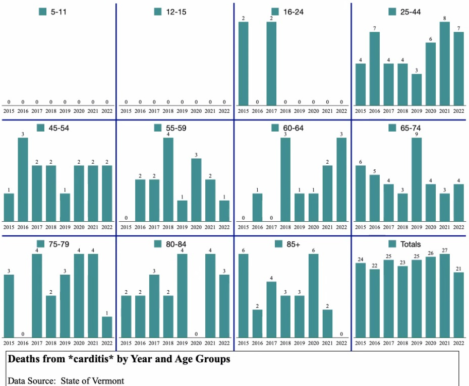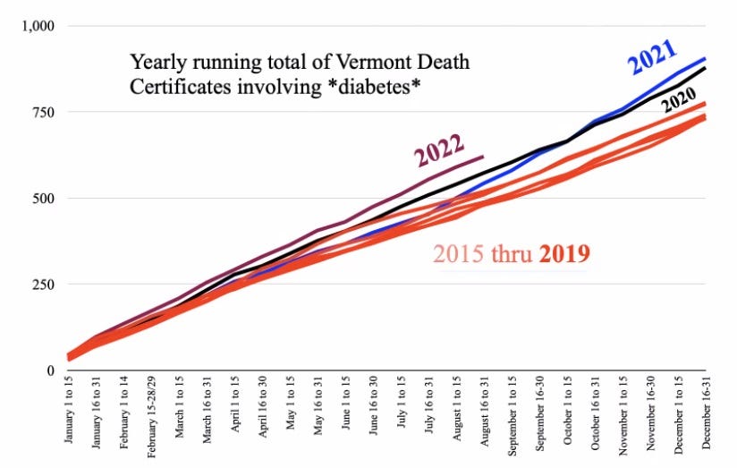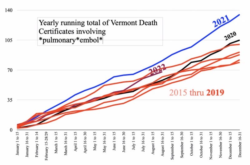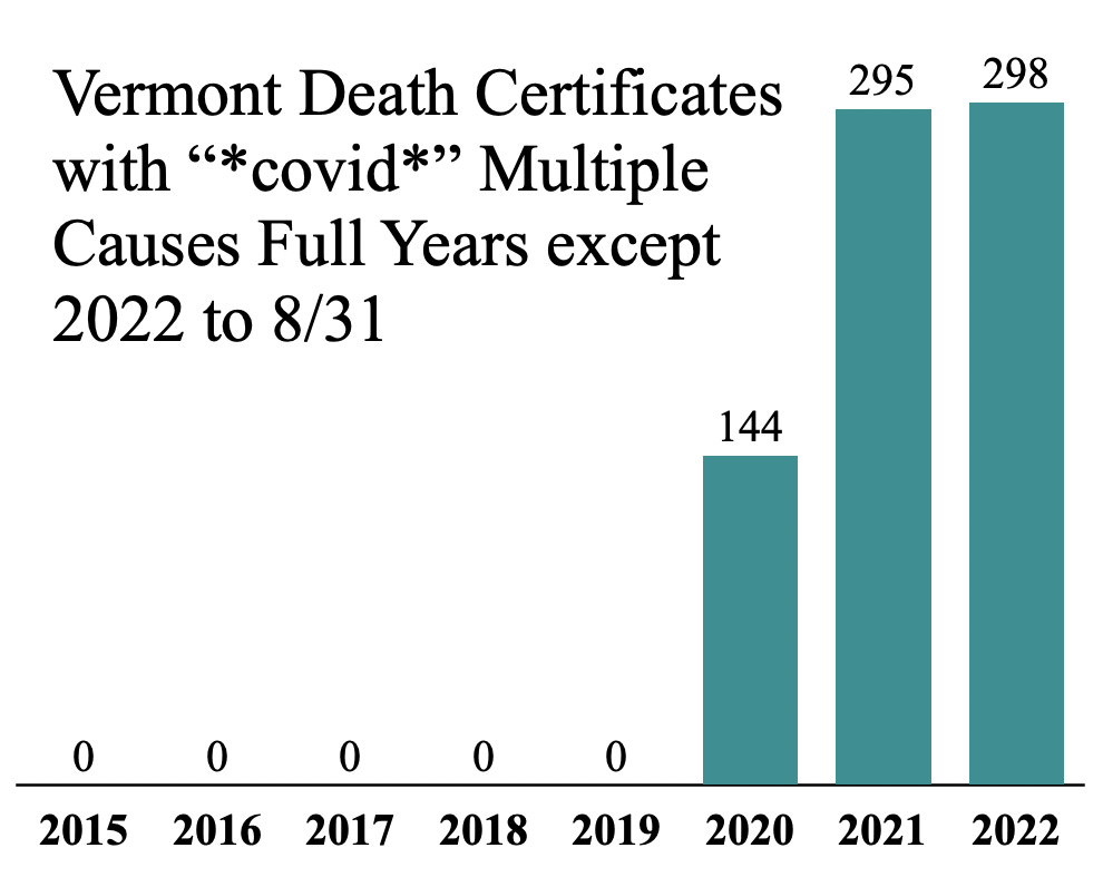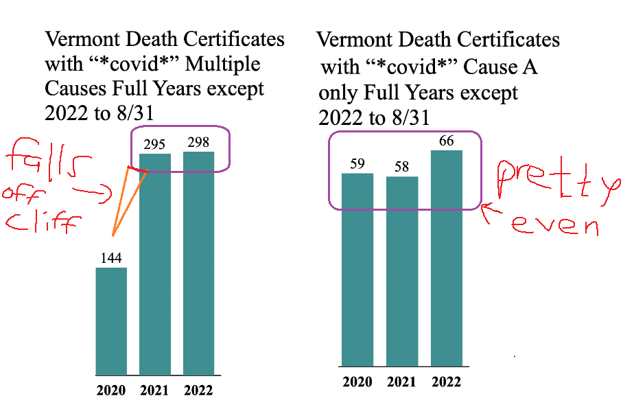 I obtained from the state of Vermont the death certificates for all deaths that occurred in the state for the years 2015-2022 (through 10/26). Although we are just beginning to sift through the data, we have some preliminary deeply concerning observations that are inconsistent with claims of both vaccine safety and efficacy.