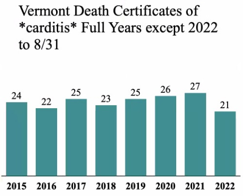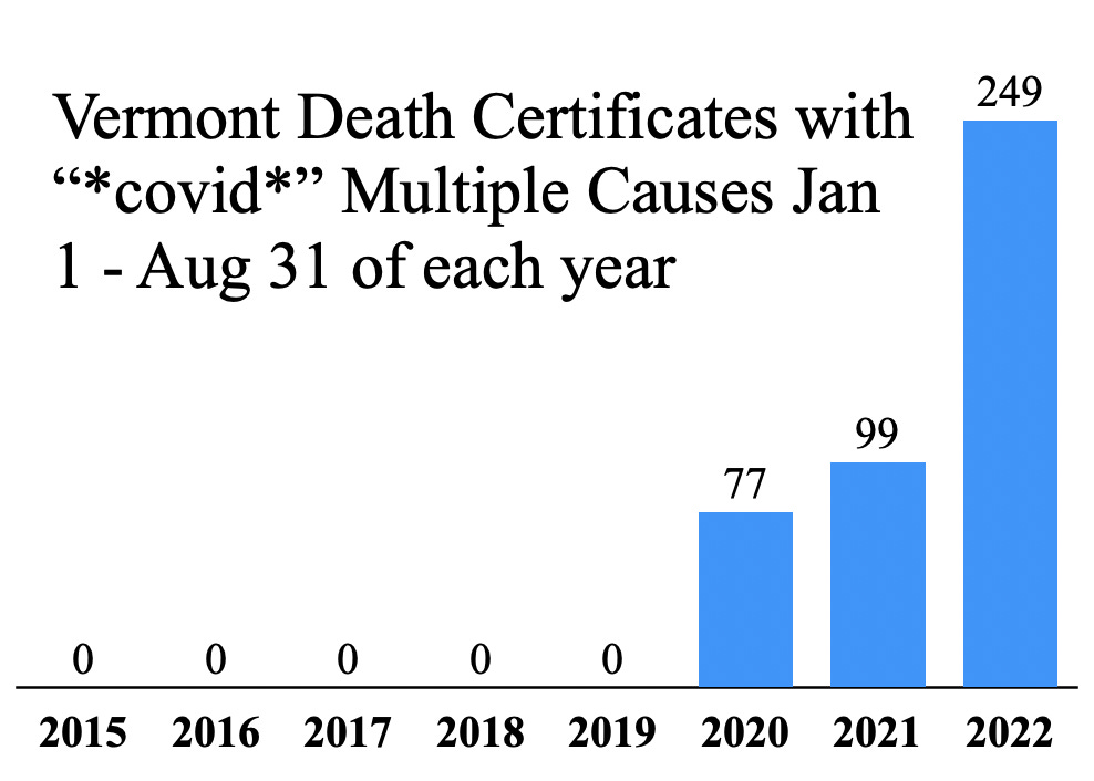 Analysis of Vermont Death Certificates Reveals Stunning Excess Mortality Increases from a Variety of Conditions in 2021 & 2022 - including COVID - but not so much in 2020