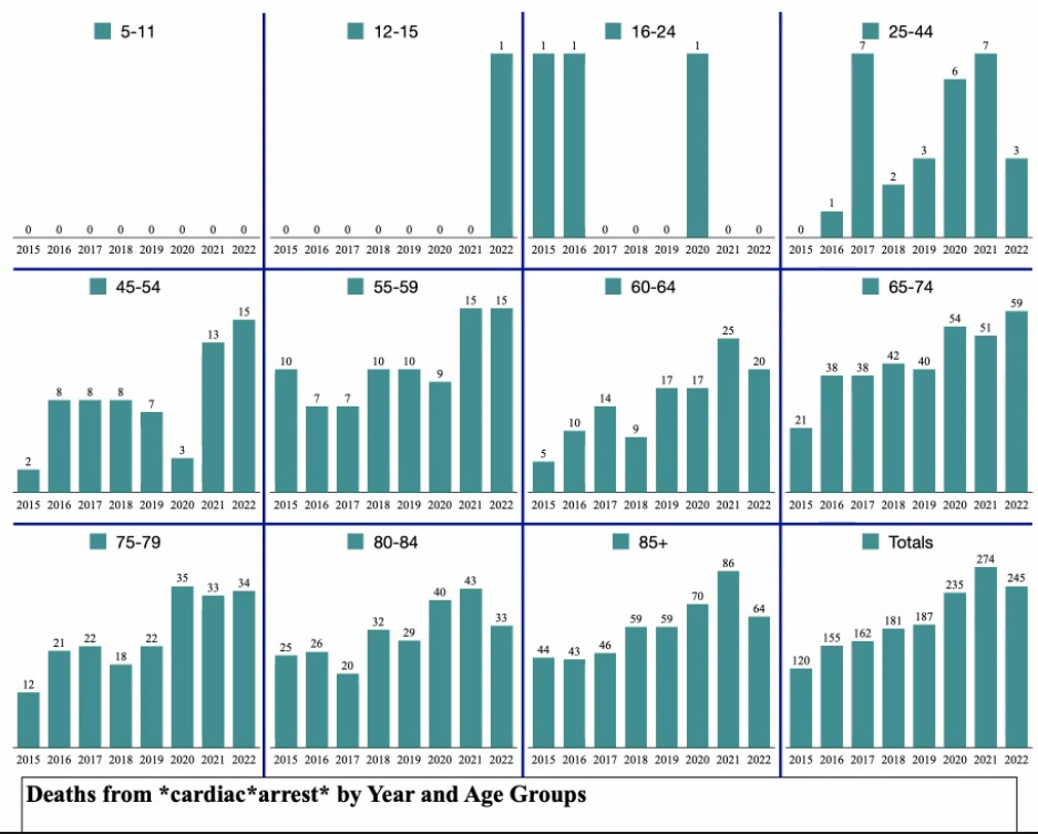 This also points to the vaccines as likely being implicated in 2021 & 2022. Looking at 2022, which absolutely crushes 2020 & 2021 for the first 8 months - and where there were no lockdowns - it definitely seems to imply that vaccines are probably one of the causes at minimum for the insanely elevated cardiac fatalities. It could also be that there is sustained elder abuse in nursing homes and LTC facilities, where vulnerable seniors with underlying cardiac conditions (or where the coroners are lazy and simply mark every death they don’t have a clear alternate cause for as a cardiac death, which has actually happened elsewhere) are being euthanized deliberately or via indifference and neglect by staff. Perhaps when we go through them all individually, we can get a better idea of what is going on.