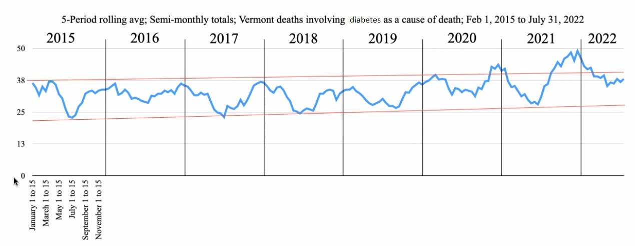 Diabetes was off the charts in 2020 already, and you can see that 2020 seems to break out above the trendline around the same time that covid came to the US: